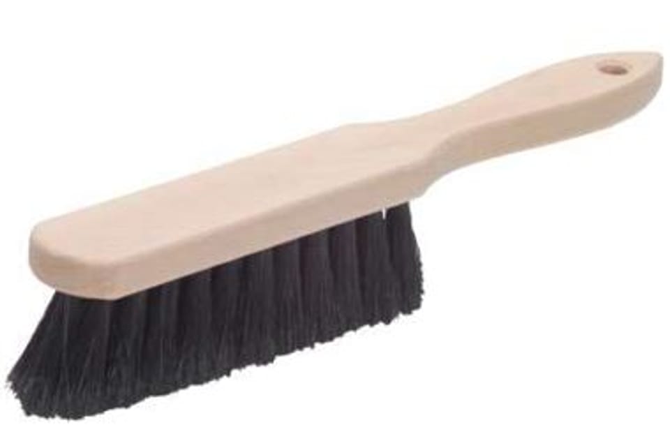 Drewniana szczotka o długości 28 cm z 3 rzędami włosia. Włosie wykonano z odpowiednio dobranej miękkości tworzyw sztucznych. Zmiotka posiada dwa rodzaje włosia ułożonego warstwami.