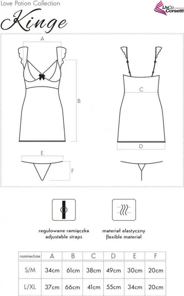 Zmysłowa Koszulka Damska Kinge LC 99187 Love Potion Black Czarny Collection LivCo Corsetti Fashion rozmiar - S/M