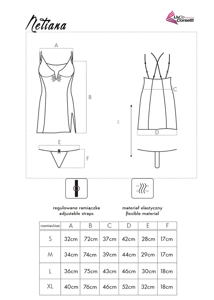 Zestaw bielizny Netiana to odpowiednie i funkcjonalne połączenie, którego nie może zabraknąć w Twojej szafie. Sprawdzi się on idealnie zarówno jako bielizna nocna zamiast tradycyjnej piżamy, lub jako ekskluzywna propozycja na romantyczny wieczór spędzony z partnerem. Delikatna struktura bielizny sprawia, że jest to pozycja niezwykle komfortowa i wygodna. Stonowane połączenie interesujących barw zdecydowanie wprawi Cię w dobry nastrój.