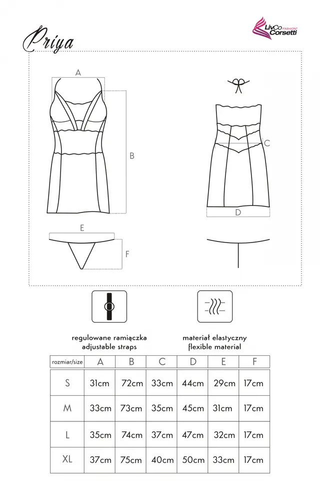 Komplet Priya sprawi, że każda kobieta go nosząca będzie emanować zmysłową elegancją. Co więcej połączenie satyny z misterną koronką doda jej kobiecego i wyjątkowo pociągającego wyglądu. Priya bardzo ładnie podkreśla biust, ramiona i szyję.
