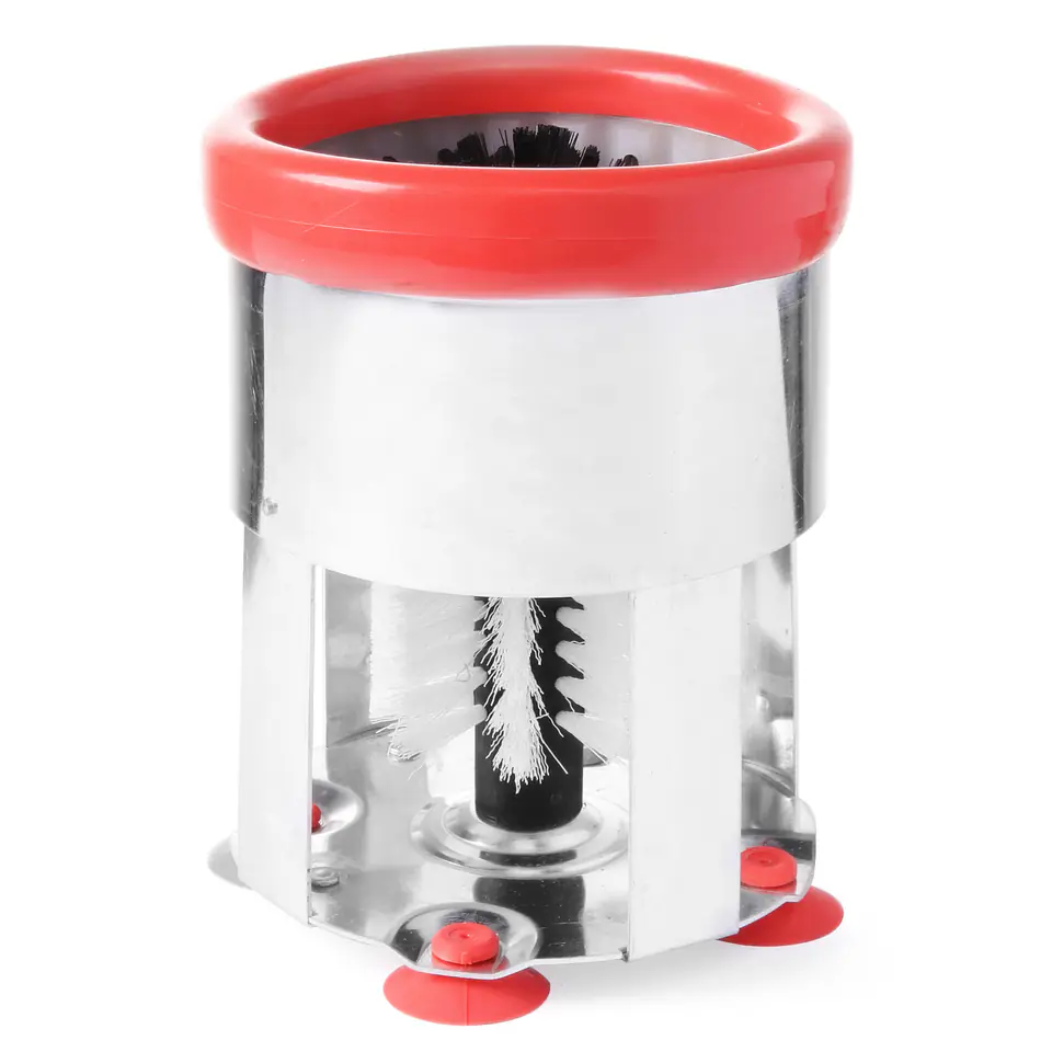 Numer producenta: 552681Profesjonalny zmywak do szklanek i pokali marki HENDI cechuje:– Obudowa wykonana z aluminium– Szczotka wykonana z nylonu– Dno wyposażone w 4 nogi-przyssawkiParametry:– średnica: 150 mm– wysokość: 190 mmW zestawie:– zmywak do szklanek