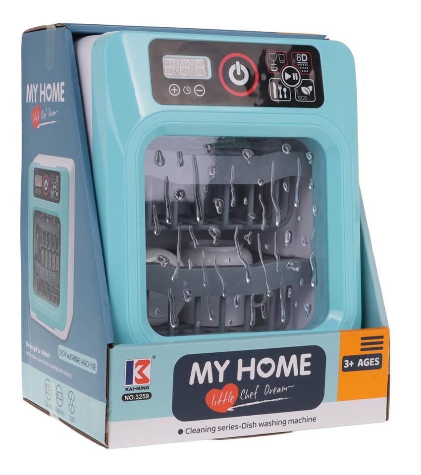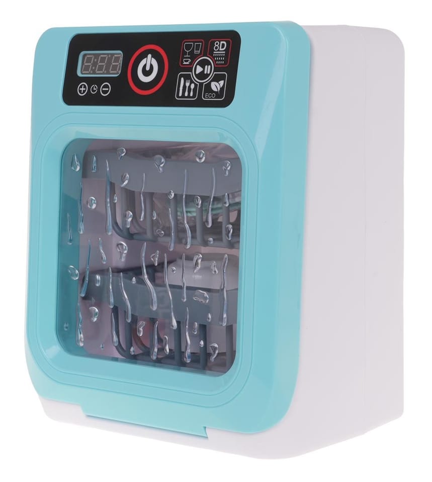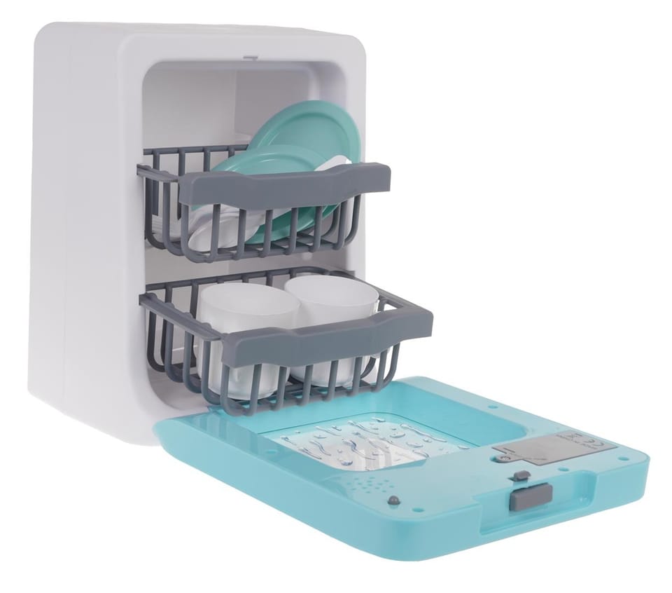 Interaktywna zmywarka z funkcją dźwięku i światła dla dzieci powyżej 3-go roku życia. Zmywarka posiada panel dotykowy, dzięki któremu można włączać i wyłączać ją oraz zmieniać program. Podczas pracy zmywarki słychać szum wody, odgłos wyparzania oraz dźwięk zakończonej pracy. Dodatkowo możemy ustawiać czas pracy zmywarki. Drzwi zmywarki są otwierane, można wyjąć ze środka kosze, aby sprawniej wkładać naczynia znajdujące się w zestawie. Do zestawu dołączono naczynia takie jak kubki, talerze, łyżki, widelce, noże. Zabawka zasilana jest bateriami typu 2 x AA (brak w zestawie). Funkcje zestawu: - odpowiedni dla dzieci powyżej 3-go roku życia, - uczy dbania o porządek, - posiada funkcje dźwiękowe: szum wody, wyparzania, odgłos zakończonej pracy, - posiada funkcje świetlne: wyświetlacz i dioda w środku, - otwierane drzwi, - wyjmowane kosze, - akcesoria do zmywania, dołączone do zestawu, - wykonana ze znakomitej jakości materiałów.