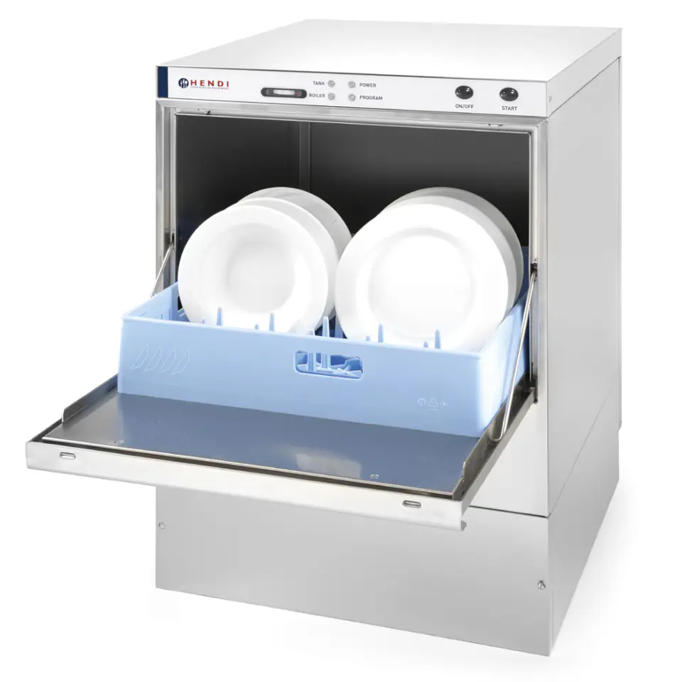 Nazwa producenta: Hendi 230305Szybka i oszczędna zmywarka barowa do naczyń sterowana elektromechanicznie marki Hendi to urządzenie zaprojektowane z myślą o kawiarniach, restauracjach, hotelach i innych profesjonalnych lokalach i zakładach gastronomicznych. Doskonale sprawdzi się podczas mycia kubków, filiżanek, sztućców czy talerzy oraz jest niezwykle prosta w użyciu, utrzymaniu w czystości i serwisowaniu.Cechy i funkcje: