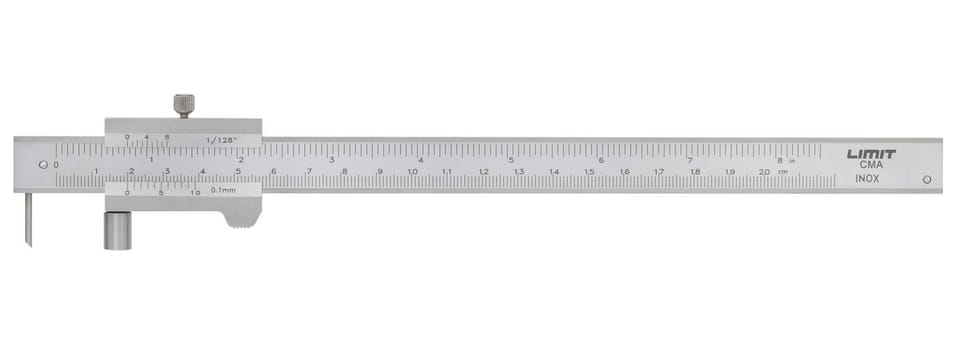 Podziałka milimetrowa, z noniuszem 1/10 mm o długości 39 mm.
