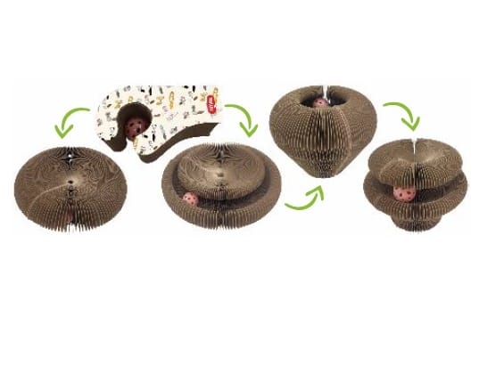 - Konstrukcja 4w1 w kształcie łapki:Składana konstrukcja umożliwia złożenie drapki w cztery różne konfiguracje, zapewniając różnorodne możliwości drapania dostosowane do potrzeb kota.