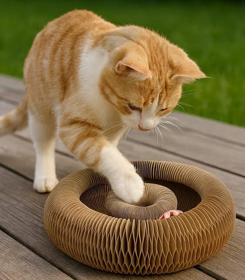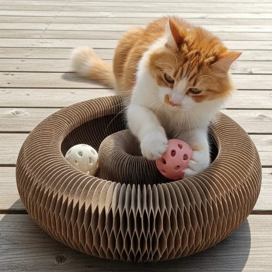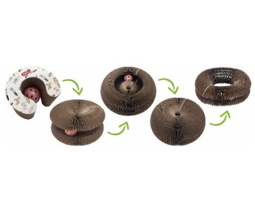 - Konstrukcja 4w1:Składana konstrukcja umożliwia ułożenie drapki w cztery różne konfiguracje, zapewniając różnorodne możliwości drapania i zabawy dostosowane do aktualnych potrzeb kota.
