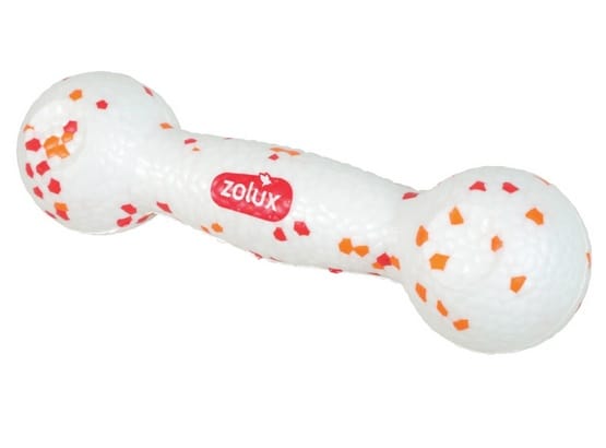 Hantel marki ZOLUX to zabawka z serii nowoczesnych akcesoriów zaprojektowanych z myślą o psach, które uwielbiają gryzienie, aportowanie i interaktywną zabawę.Wykonana z innowacyjnego materiału ETPU (spienionego poliuretanu termoplastycznego), który zapewnia wyjątkową trwałość, elastyczność oraz bezpieczeństwo.Cechy zabawki: