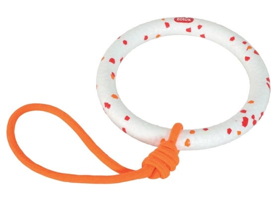 Pierścień ze sznurem marki ZOLUX to zabawka z serii nowoczesnych akcesoriów zaprojektowanych z myślą o psach, które uwielbiają gryzienie, aportowanie i interaktywną zabawę.Wykonana z innowacyjnego materiału ETPU (spienionego poliuretanu termoplastycznego), który zapewnia wyjątkową trwałość, elastyczność oraz bezpieczeństwo.Cechy zabawki: