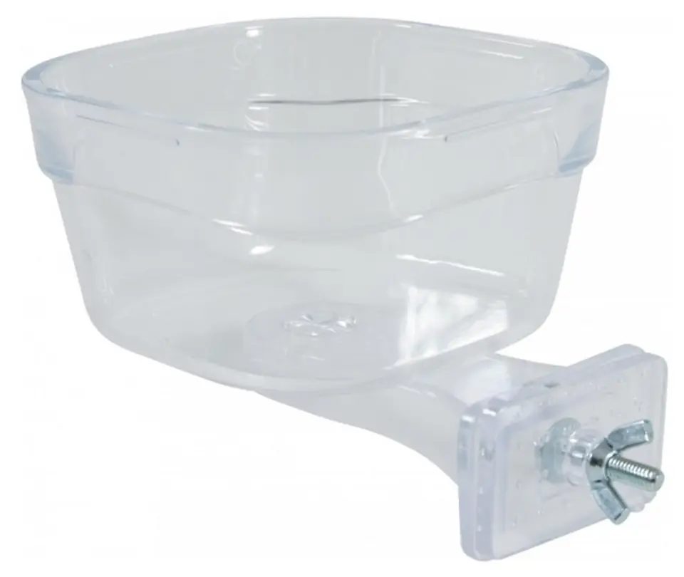 Karmidełko dla papug LKarmnik to niezbędny element wyposażenia każdej klatki dla ptaków. Wykonany z wytrzymałego, przezroczystego, nietoksycznego tworzywa sztucznego, idealnie nada się do podawania zwierzętom pożywienia.Dzięki gładkiej powierzchni, produkt łatwo utrzymać w czystości. Karmnik można przymocować do prętów klatki w dowolnym miejscu.Produkt dostępny w średnim i dużym rozmiarze (M i L).