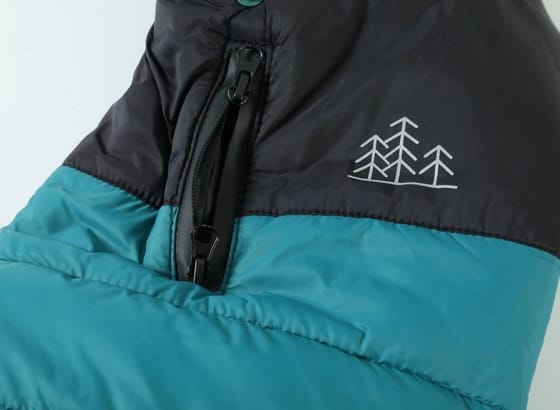 • Materiał wysokiej jakości:Tkanina zewnętrzna, podszewka, wypełnienie oraz lamówka wykonane w 100% z poliestru z recyklingu.Zamek błyskawiczny i ściągacze wykonane z trwałego poliestru.