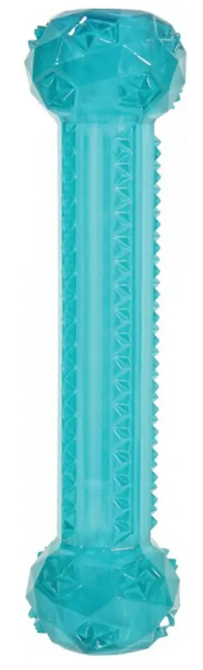 Wytrzymała zabawka w błyszczącym kolorze!Kolekcja zabawek TPR (z kauczuku termoplastycznego) - półprzezroczystych, wytrzymałych, w błyszczących kolorach. To idealna zabawka dla psów, które potrzebują gryźć, żuć i być w ruchu. Dzięki swojej formie, kolorom i efektom dźwiękowym, dostarczy wielogodzinnej rozrywki.Każda zabawka dostępna jest w dwóch rozmiarach i w ten sposób lepiej odpowiada potrzebom różnych psów.Wymiary (sz. x dł. x wy.) [mm]: 63 x 68 x 255 mm