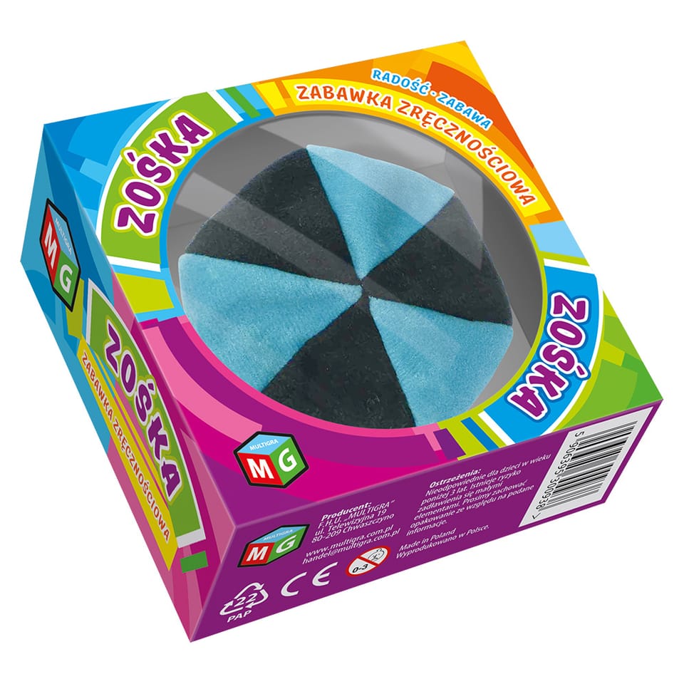 Zabawa polega na odbijaniu i żonglowaniu małą piłeczką. Pochodzi ona z Azji Wschodniej, gdzie taką rozrywkę uprawia się od stuleci. Jednakdopiero w XX wieku w Stanach Zjednoczonych opracowano wszystkie najbardziej znane metody i techniki odbijania.Zabawka ćwiczy koordynację ruchową, sprawność, zwinność. Pozwala zaznać ruchu zarówno we wnętrzu jak i na zewnątrz. Pojedynczo bądź w grupie.Zośka - 1 szt.