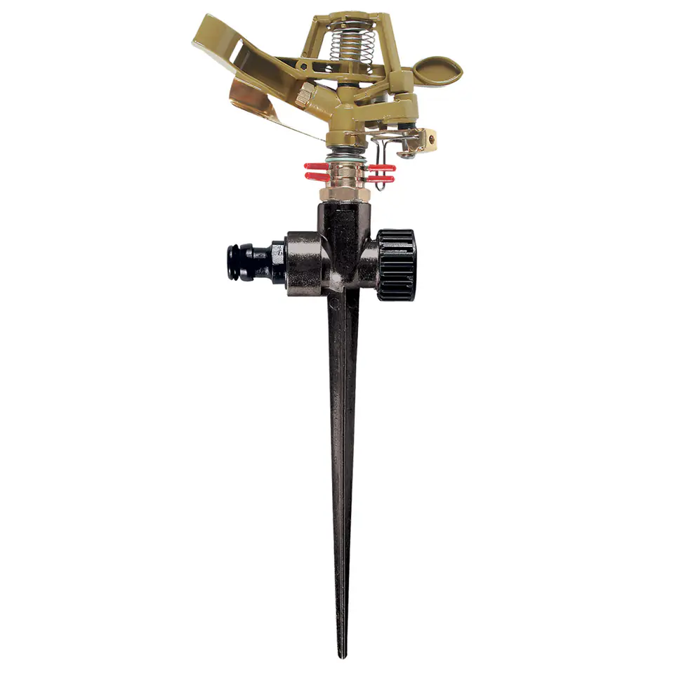 Przeznaczony do nawadniania średnich i dużych powierzchni np. trawy, grządek. Osadzony na metalowej szpilce. Silny strumień wody wytwarzany przez zraszacz umożliwia użytkowanie na otwartych powierzchniach, gdzie występują podmuchy wiatru. Sektorowa lub kołowa powierzchnia nawadniania regulowana w zakresie 30-280 lub 360 stopni. Zasięg regulowany do max. 12 m, powierzchnia max. 452 m2. Możliwe szeregowe podłączenie kolejnego zraszacza poprzez przyłącze kranowe 3/4?.