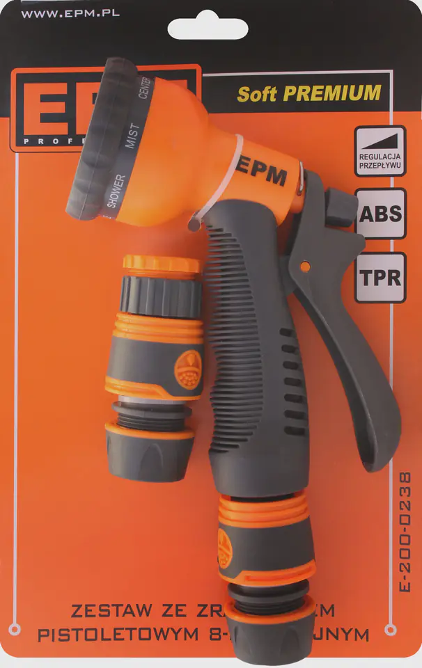 - zestaw ze zraszaczem pistoletowym z wysokiej jakości tworzywa sztucznego ABS i gumy TPR