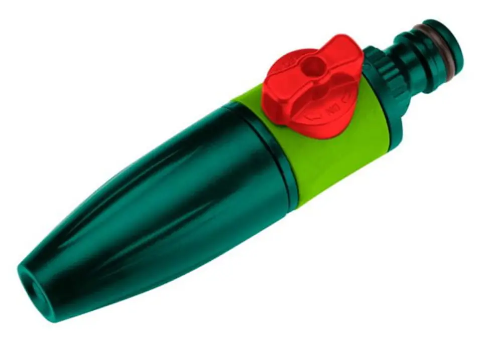 Zraszacz prosty VERTO 15G700 z możliwością zamykania przepływu wody. Regulowana głowica umożliwia ustawienie kształtu strumienia wody od mgiełki do silnego strumienia punktowego.