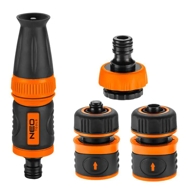 Zestaw 1/2" ze zraszaczem prostym, złączkami i przyłączem do kranu NEO (nr ref. 15-710) przeznaczony jest do nawadniania m.in. trawników. Regulowana głowica umożliwia ustawienie kształtu strumienia wody od mgiełki do silnego strumienia punktowego. Gumowany uchwyt.