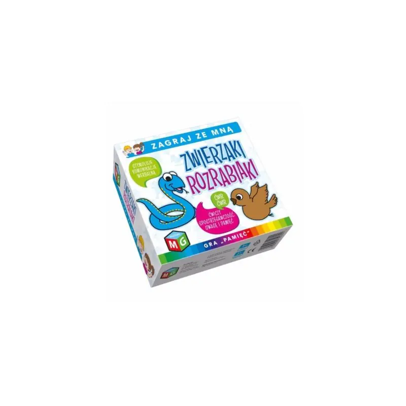 ZWIERZAKI ROZRABIAKI to emocjonująca gra zapewniająca dużą dawkę śmiechu. Jest to edukacyjna wersja klasycznej gry „pamięć" połączona z ćwiczeniami ortograficznymi, które dbają o prawidłowe działanie aparatu artykulacyjnego, ćwiczą mięśnie narządów mowy, wydłużają fazę wdechową i wydechową oraz zapewniają prawidłowe wybrzmiewanie grup spółgłoskowych. „Zwierzaki rozrabiaki" ćwiczą spostrzegawczość, uwagę i pamięć oraz stymulują komunikację werbalną. Zabawę uprzyjemniają proste i kolorowe rysunki. Zawartość pudełka: ilustrowane tabliczki ze zwierzętami- 40 szt, instrukcja.