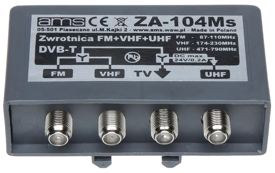 | Wejście: | 1 - FM : 87 ... 110 MHz, 2 - VHF : 174 ... 230 MHz, 3 - UHF : 471 ... 694 MHz + DC |